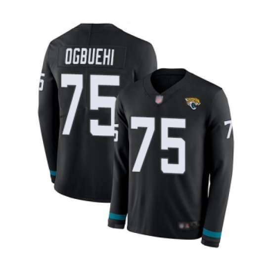 >Youth Jacksonville Jaguars #75 Cedric Ogbuehi Limited Black Therma Long Sleeve Football Jersey