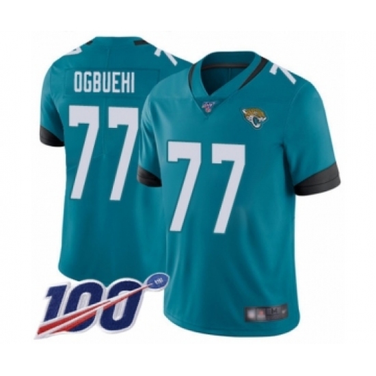>Youth Jacksonville Jaguars #77 Cedric Ogbuehi Teal Green Alternate Vapor Untouchable Limited Player 100th Season Football Jersey