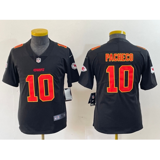 >Youth Kansas City Chiefs #10 Isiah Pacheco Black Fashion Vapor Limited Stitched Jersey