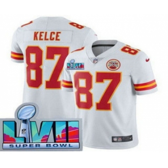 >Youth Kansas City Chiefs #87 Travis Kelce Limited White Super Bowl LVII Vapor Jersey