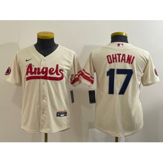 >Youth Los Angeles Angels #17 Shohei Ohtani Cream 2022 City Connect Cool Base Stitched Jersey