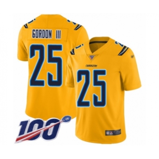 >Youth Los Angeles Chargers #25 Melvin Gordon Limited Gold Inverted Legend 100th Season Football Jersey