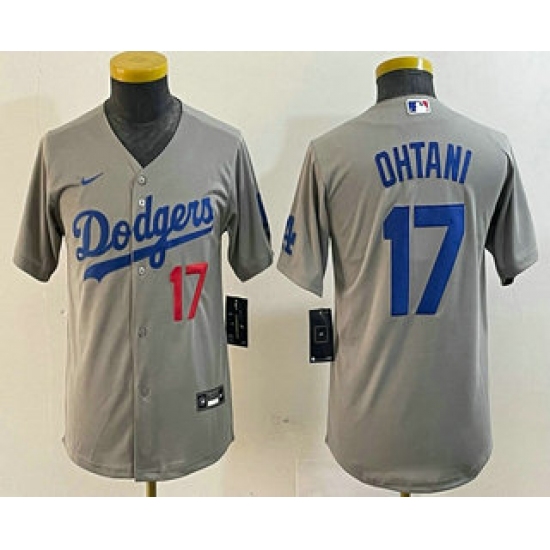 >Youth Los Angeles Dodgers #17 Shohei Ohtani Number Grey Stitched Cool Base Nike Jersey