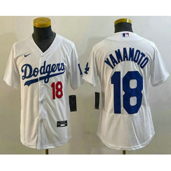 >Youth Los Angeles Dodgers #18 Yoshinobu Yamamoto Number White Stitched Cool Base Nike Jersey