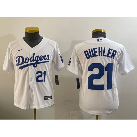 >Youth Los Angeles Dodgers #21 Walker Buehler White Stitched Cool Base Nike Jerseys