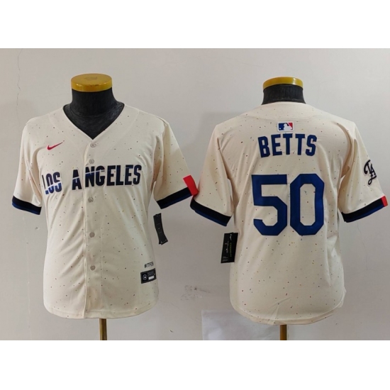 Youth Los Angeles Dodgers #50 Mookie Betts Cream 2024 City Connect Limited Stitched Jersey