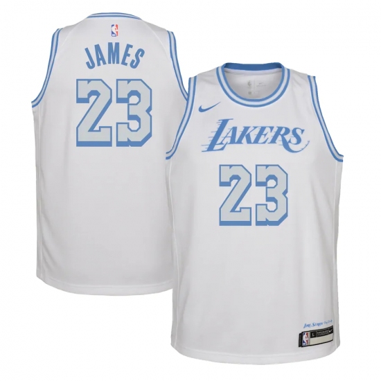 >Youth Los Angeles Lakers #23 LeBron James Nike White 2020-21 Swingman Jersey