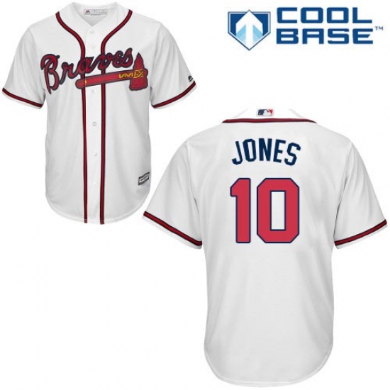 Youth Majestic Atlanta Braves #10 Chipper Jones Replica White Home Cool Base MLB Jersey