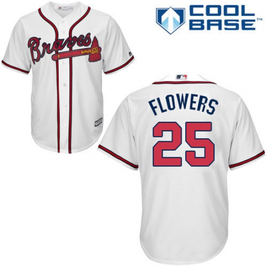 Home>MLB>Atlanta Braves>Tyler Flowers>Youth Majestic Atlanta Braves #25 Tyler Flowers Replica White Home Cool Base MLB Jersey