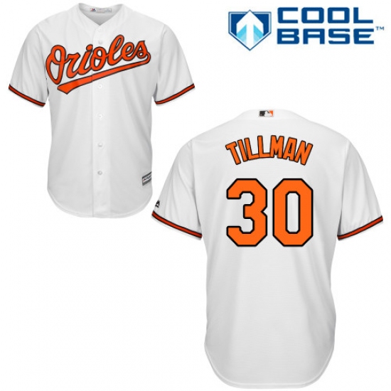 Home>MLB>Baltimore Orioles>Chris Tillman>Youth Majestic Baltimore Orioles #30 Chris Tillman Authentic White Home Cool Base MLB Jersey