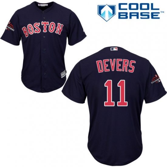 Youth Majestic Boston Red Sox #11 Rafael Devers Authentic Navy Blue Alternate Road Cool Base 2018 World Series Champions MLB Jersey