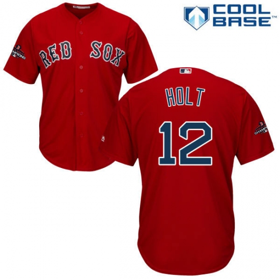 >Youth Majestic Boston Red Sox #12 Brock Holt Authentic Red Alternate Home Cool Base 2018 World Series Champions MLB Jersey