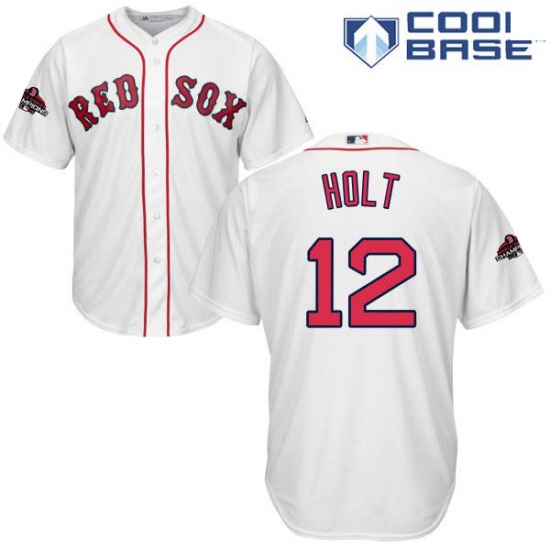 Youth Majestic Boston Red Sox #12 Brock Holt Authentic White Home Cool Base 2018 World Series Champions MLB Jersey
