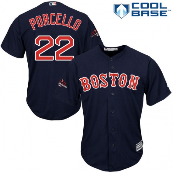 Youth Majestic Boston Red Sox #22 Rick Porcello Authentic Navy Blue Alternate Road Cool Base 2018 World Series Champions MLB Jersey