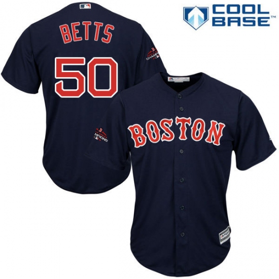 >Youth Majestic Boston Red Sox #50 Mookie Betts Authentic Navy Blue Alternate Road Cool Base 2018 World Series Champions MLB Jersey