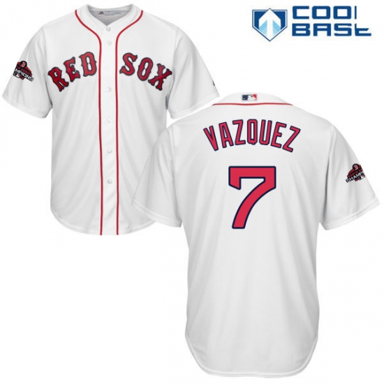 Youth Majestic Boston Red Sox #7 Christian Vazquez Authentic White Home Cool Base 2018 World Series Champions MLB Jersey