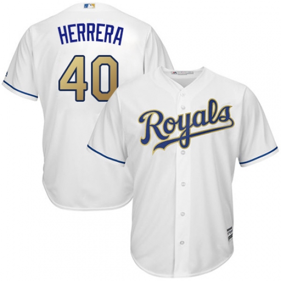 Home>MLB>Kansas City Royals>Kelvin Herrera>Youth Majestic Kansas City Royals #40 Kelvin Herrera Authentic White Home Cool Base MLB Jersey