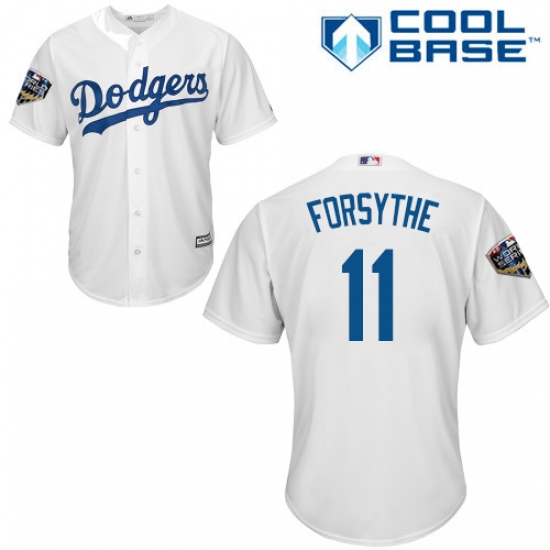 >Youth Majestic Los Angeles Dodgers #11 Logan Forsythe Authentic White Home Cool Base 2018 World Series MLB Jersey