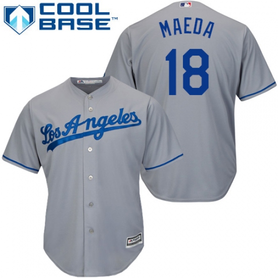 Home>MLB>Los Angeles Dodgers>Kenta Maeda>Youth Majestic Los Angeles Dodgers #18 Kenta Maeda Authentic Grey Road Cool Base MLB Jersey