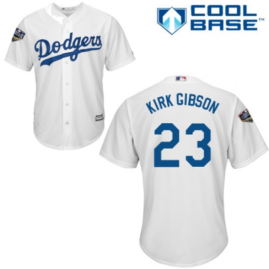 Youth Majestic Los Angeles Dodgers #23 Kirk Gibson Authentic White Home Cool Base 2018 World Series MLB Jersey