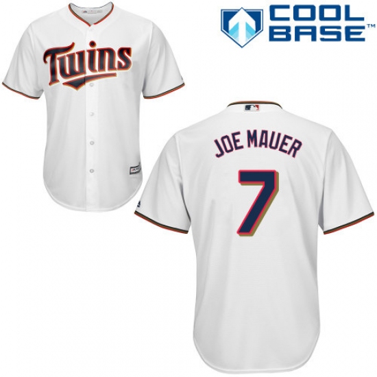 Home>MLB>Minnesota Twins>Joe Mauer>Youth Majestic Minnesota Twins #7 Joe Mauer Replica White Home Cool Base MLB Jersey