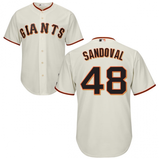 Home>MLB>San Francisco Giants>Pablo Sandoval>Youth Majestic San Francisco Giants #48 Pablo Sandoval Authentic Cream Home Cool Base MLB Jersey