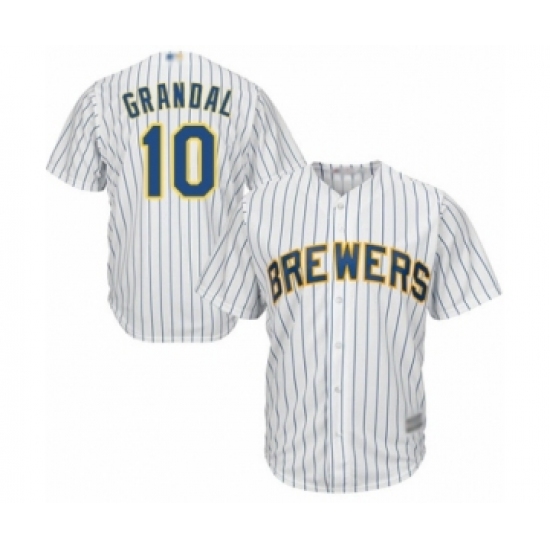 Youth Milwaukee Brewers #10 Yasmani Grandal Replica White Home Cool Base Baseball Jersey