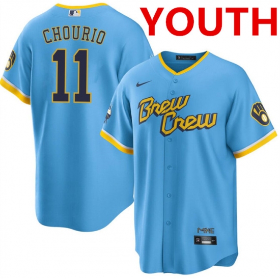 >Youth Milwaukee Brewers #11 Jackson Chourio Powder Blue City Connect Cool Base Stitched Jersey