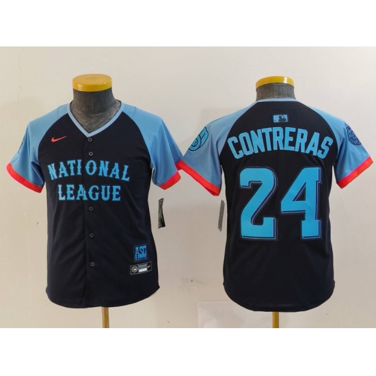 >Youth Milwaukee Brewers #24 William Contreras Number Navy 2024 All Star Limited Stitched Jersey