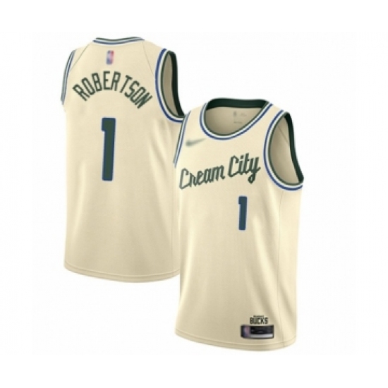 Youth Milwaukee Bucks #1 Oscar Robertson Swingman Cream Basketball Jersey - 2019 20 City Edition