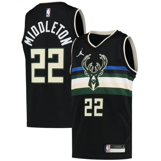>Youth Milwaukee Bucks #22 Khris Middleton Jordan Brand Black 2020-21 Swingman Player Jersey