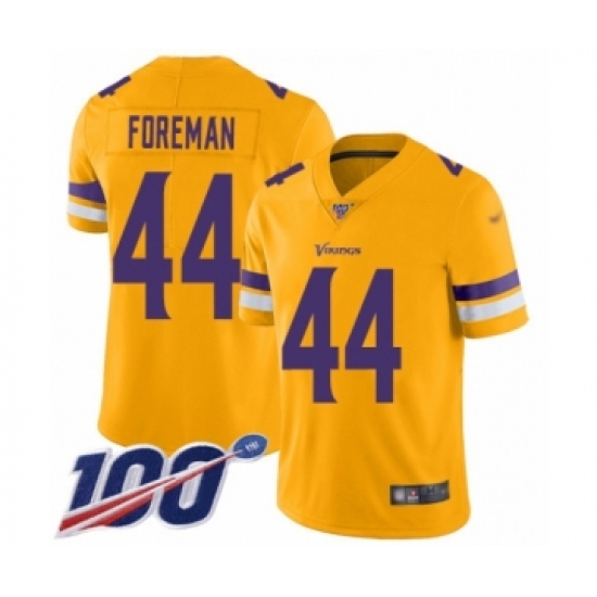>Youth Minnesota Vikings #44 Chuck Foreman Limited Gold Inverted Legend 100th Season Football Jersey
