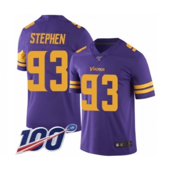 >Youth Minnesota Vikings #93 Shamar Stephen Limited Purple Rush Vapor Untouchable 100th Season Football Jersey