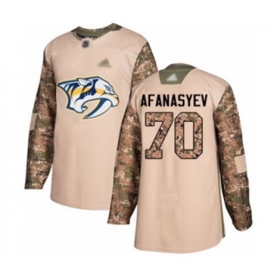 Men's Nashville Predators #70 Egor Afanasyev Authentic Camo Veterans Day Practice Hockey Jersey