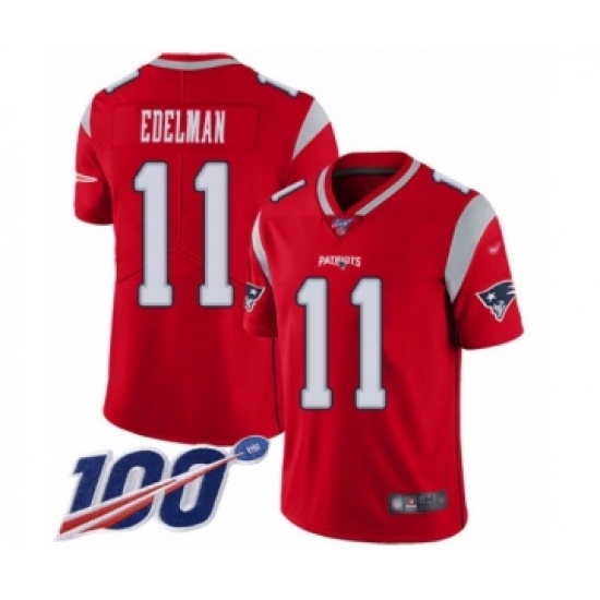 >Youth New England Patriots #11 Julian Edelman Limited Red Inverted Legend 100th Season Football Jersey