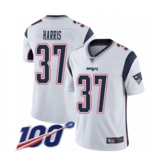 >Youth New England Patriots #37 Damien Harris White Vapor Untouchable Limited Player 100th Season Football Jersey