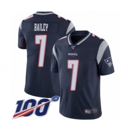 Men's New England Patriots #7 Jake Bailey Navy Blue Team Color Vapor Untouchable Limited Player 100th Season Football Jersey