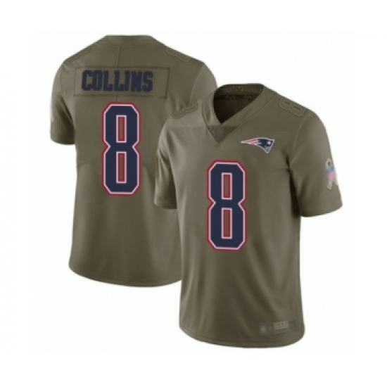 >Youth New England Patriots #8 Jamie Collins Limited Olive 2017 Salute to Service Football Jersey