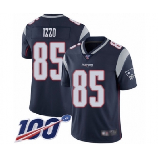 >Youth New England Patriots #85 Ryan Izzo Navy Blue Team Color Vapor Untouchable Limited Player 100th Season Football Jersey