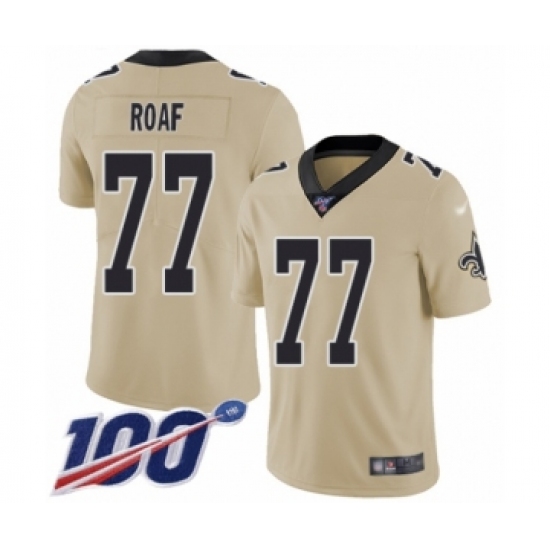 >Youth New Orleans Saints #77 Willie Roaf Limited Gold Inverted Legend 100th Season Football Jersey