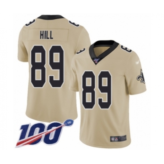 >Youth New Orleans Saints #89 Josh Hill Limited Gold Inverted Legend 100th Season Football Jersey