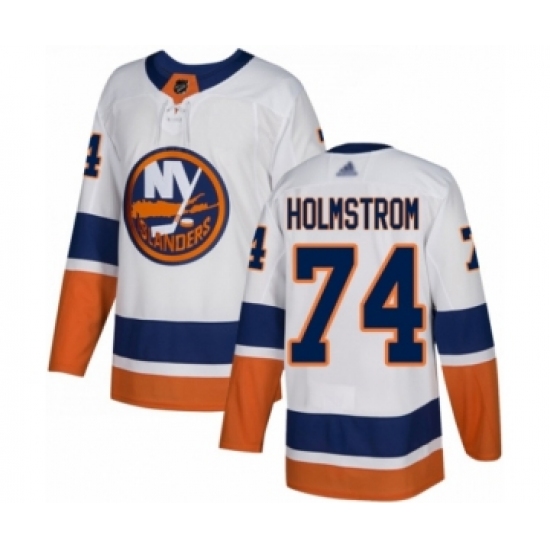 >Youth New York Islanders #74 Simon Holmstrom Authentic White Away Hockey Jersey