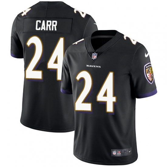 Home>NFL>Baltimore Ravens>Brandon Carr>Youth Nike Baltimore Ravens #24 Brandon Carr Black Alternate Vapor Untouchable Limited Player NFL Jersey