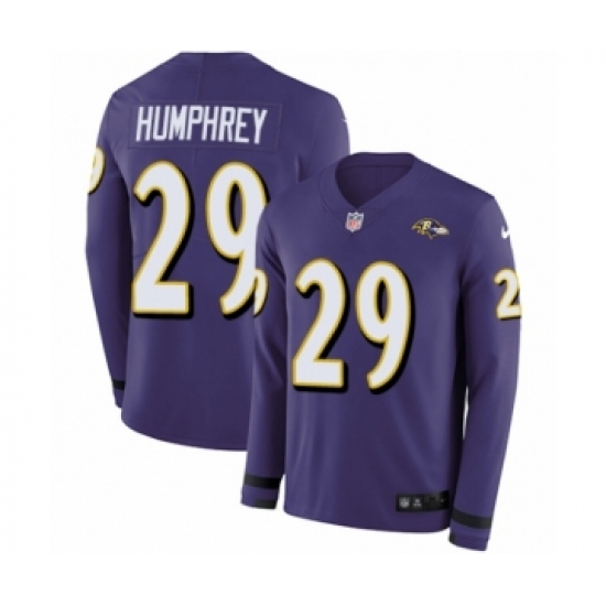 Youth Nike Baltimore Ravens #29 Marlon Humphrey Limited Purple Therma Long Sleeve NFL Jersey