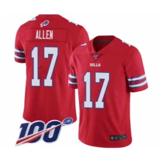 Youth Nike Buffalo Bills #17 Josh Allen Limited Red Rush Vapor Untouchable 100th Season NFL Jersey