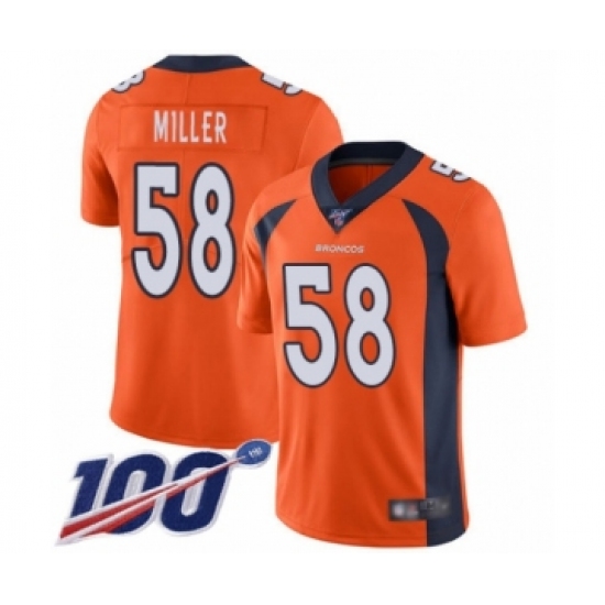 Youth Nike Denver Broncos #58 Von Miller Orange Team Color Vapor Untouchable Limited Player 100th Season NFL Jersey