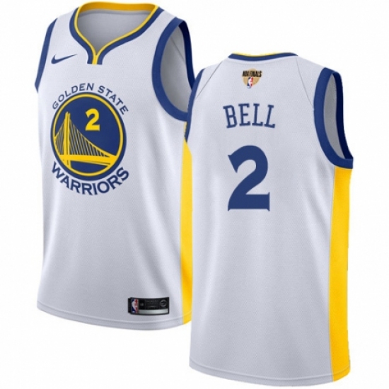>Youth Nike Golden State Warriors #2 Jordan Bell Authentic White Home 2018 NBA Finals Bound NBA Jersey - Association Edition