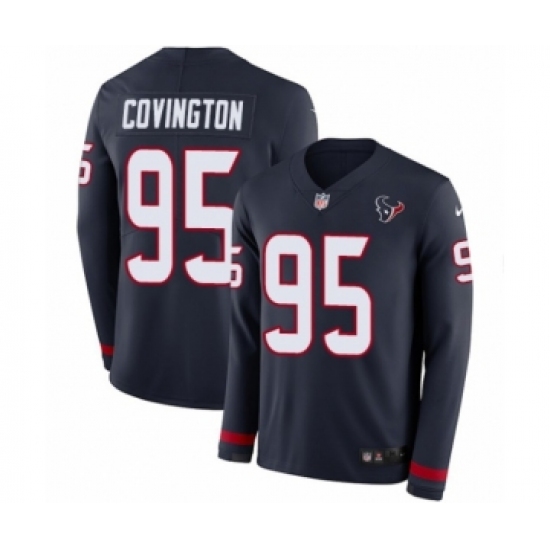 Youth Nike Houston Texans #95 Christian Covington Limited Navy Blue Therma Long Sleeve NFL Jersey