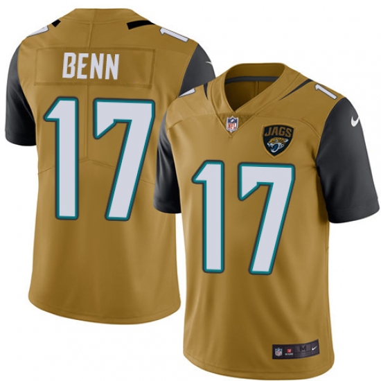 Home>NFL>Jacksonville Jaguars>Arrelious Benn>Youth Nike Jacksonville Jaguars #17 Arrelious Benn Limited Gold Rush Vapor Untouchable NFL Jersey