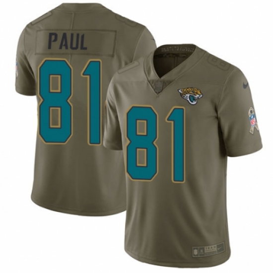 >Youth Nike Jacksonville Jaguars #81 Niles Paul Limited Olive 2017 Salute to Service NFL Jersey